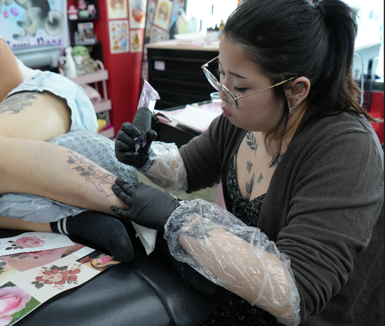 5YRS EXPERIENCE-Cami has been with 5th layer for two years now, around the time we took over the second floor of 7 Union. She specializes in Color Illustrative Anime and kawaii pop-culture tattoos, as well as color on all skin tones! (5th layer always offers free color tests for our melanated clients, call us and ask about it!) You'll often find her yapping away about YouTube deep dives. She has been tattooing for almost 5 years and is super interested in traveling and making new connections both by fellow artists and new clients! Contact her via the booking form on her instagram or just pop in to check out her flash books as well! ps. ask about the Kirby book!